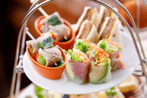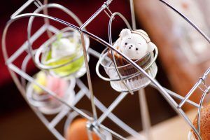 今回のテーマは岡山県産のフルーツ 桃とマスカットです。当店のアフタヌーンティーでは定義されている品のある奇麗さは勿論ですが、女性らしい可愛さを添えられるようにイメージしております。フルーツをたくさん使ったデザートと焼き菓子、丹精込めてつくったセイボリーをお楽しみください。