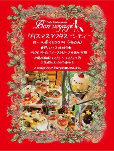 2022.12.13 12月の営業について 12月は休まず営業致します。なお営業時間については、12/22木曜日12/29木曜日12/31土曜日は16:00までの営業とさせて頂きます。只今、12/27までの期間限定でクリスマスアフタヌーンティーを開催しております。1/15より春の倉敷アフタヌーンティーに参加させていただきます。こちらもどうぞよろしくお願い致します。クリスマスケーキ・オードブルのご予約も承りますのでよろしくお願いいたします。 ← 次 一覧ページ 前 →